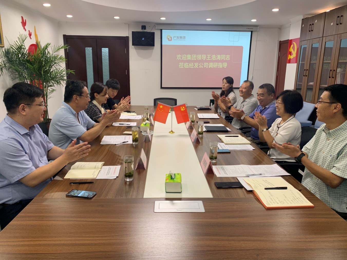 8月5日上午,產(chǎn)發(fā)集團(tuán)黨委委員、副總經(jīng)理王浩濤同志一行到濟(jì)南經(jīng)濟(jì)發(fā)展有限公司進(jìn)行調(diào)研。企管集團(tuán)黨委書(shū)記、董事長(zhǎng)張欣同志,黨委副書(shū)記、總經(jīng)理朱風(fēng)亮同志等陪同調(diào)研。經(jīng)發(fā)公司黨支部書(shū)記、執(zhí)行董事長(zhǎng)劉濤同志以及經(jīng)發(fā)公司經(jīng)營(yíng)班子成員迎接調(diào)研并匯報(bào)工作。