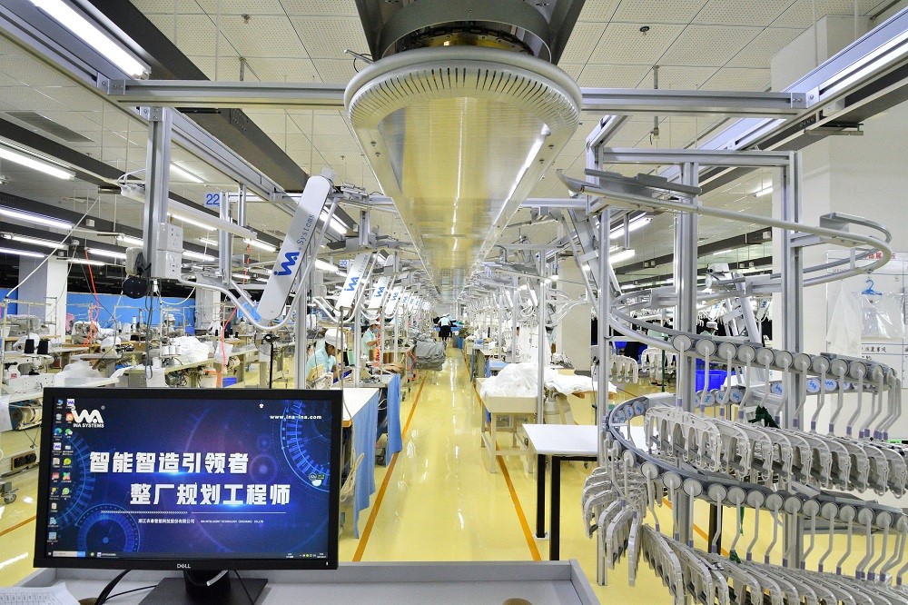 除了面料染色的智能化改造,圍繞服裝的設計、研發(fā)、生產,元首集團也正在加快變革,通過探索和引進自動化縫制單元、智能吊掛系統(tǒng)、柔性整燙系統(tǒng)、自動立體倉儲和物流配送系統(tǒng),建立生產流程的MES系統(tǒng)管理,提高生產效率。