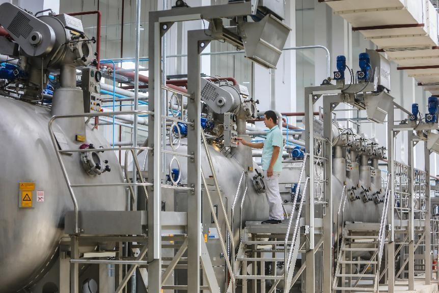 在元首集團針織服裝產業(yè)園,引人注目的不僅是產業(yè)變革和調整,更有智能化升級后的質量提升。其中,面料印染作為服裝生產研發(fā)的關鍵環(huán)節(jié),更能體現出企業(yè)科技創(chuàng)新實力和綠色發(fā)展水平,也是激活新舊動能轉換的“主引擎”。