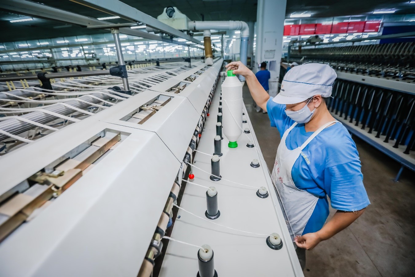 元首紡織對產(chǎn)品質(zhì)量把控嚴(yán)格,始終堅持專注做好紗線。從源頭開始把關(guān),嚴(yán)審每一個環(huán)節(jié),始終采用一級新疆棉,寧愿在成本上高一些,也要保證基礎(chǔ)原料的品質(zhì)。從棉花進入車間開始,就給每一包棉花做詳細“體檢”,詳細掌握它們的生產(chǎn)日期、批號、重量、異纖含量等質(zhì)量特性,進而提高配棉的精準(zhǔn)度。